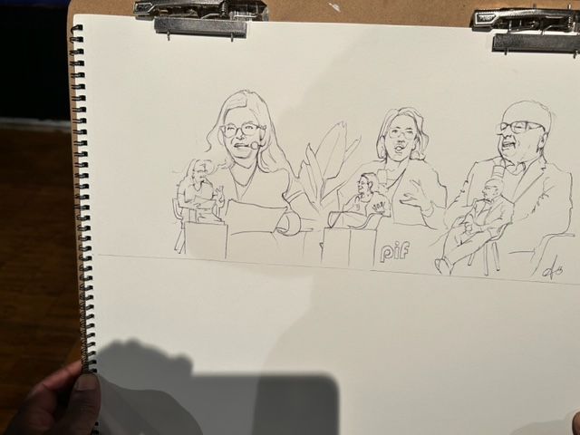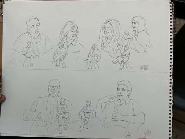 During the event, Adrian Hayles will be documenting the conversation with a set of loose, court-room style portraits of speakers.